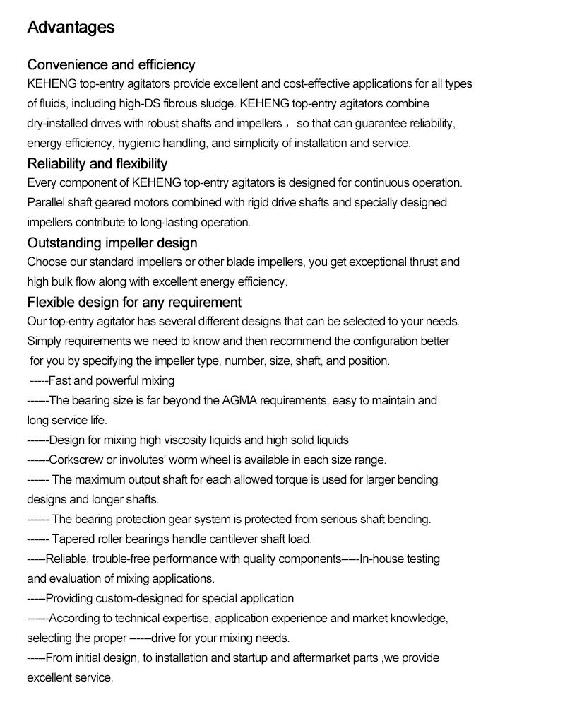 KEHENG トップエントリー撹拌機は、1989 年以来、世界中の加工工場が特定の用途を満たすために必要なミキサーやその他の機器を見つけるのを支援してきました。お客様固有の取り付け、流れパターン、混合要件に基づいて、お客様のニーズに最適なトップエントリーミキサーの選択をお手伝いし、ほぼすべての撹拌と混合にカスタマイズされたソリューションを提供するインペラの設計と位置を提案します。プロセス。当社のセールスエンジニアは、お客様の加工作業に最適な製品またはカスタム構築装置を決定するためにお客様と相談することができます。