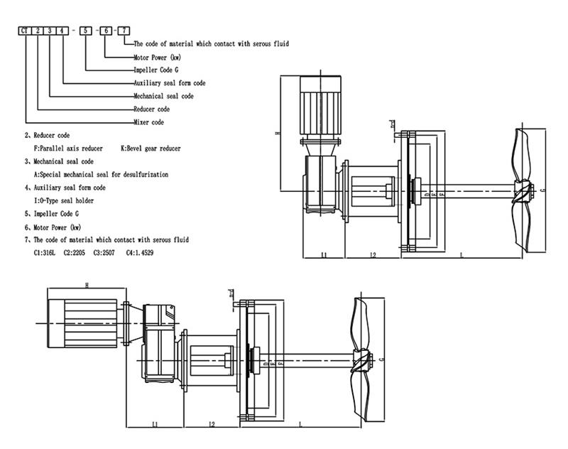 注: すべてのミキサー部品の材質は、現地の作業条件、混合媒体、顧客の要件に応じてカスタムメイドできます。